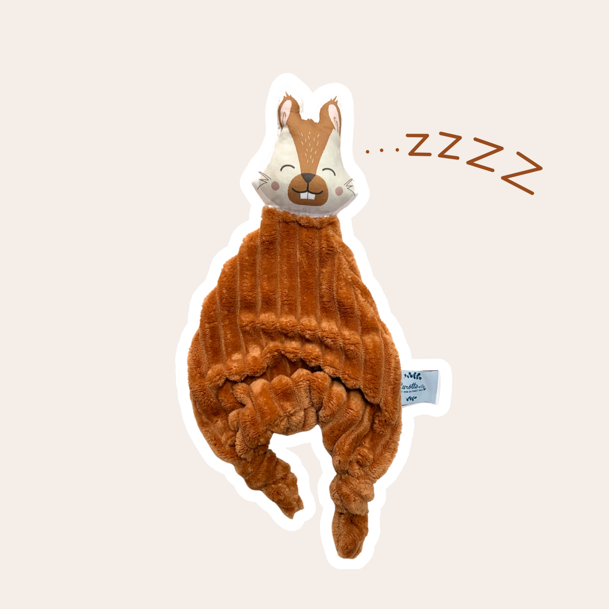 Doudou Écureuil en velours côtelé camel tout doux – Le Compagnon Idéal pour Bébé