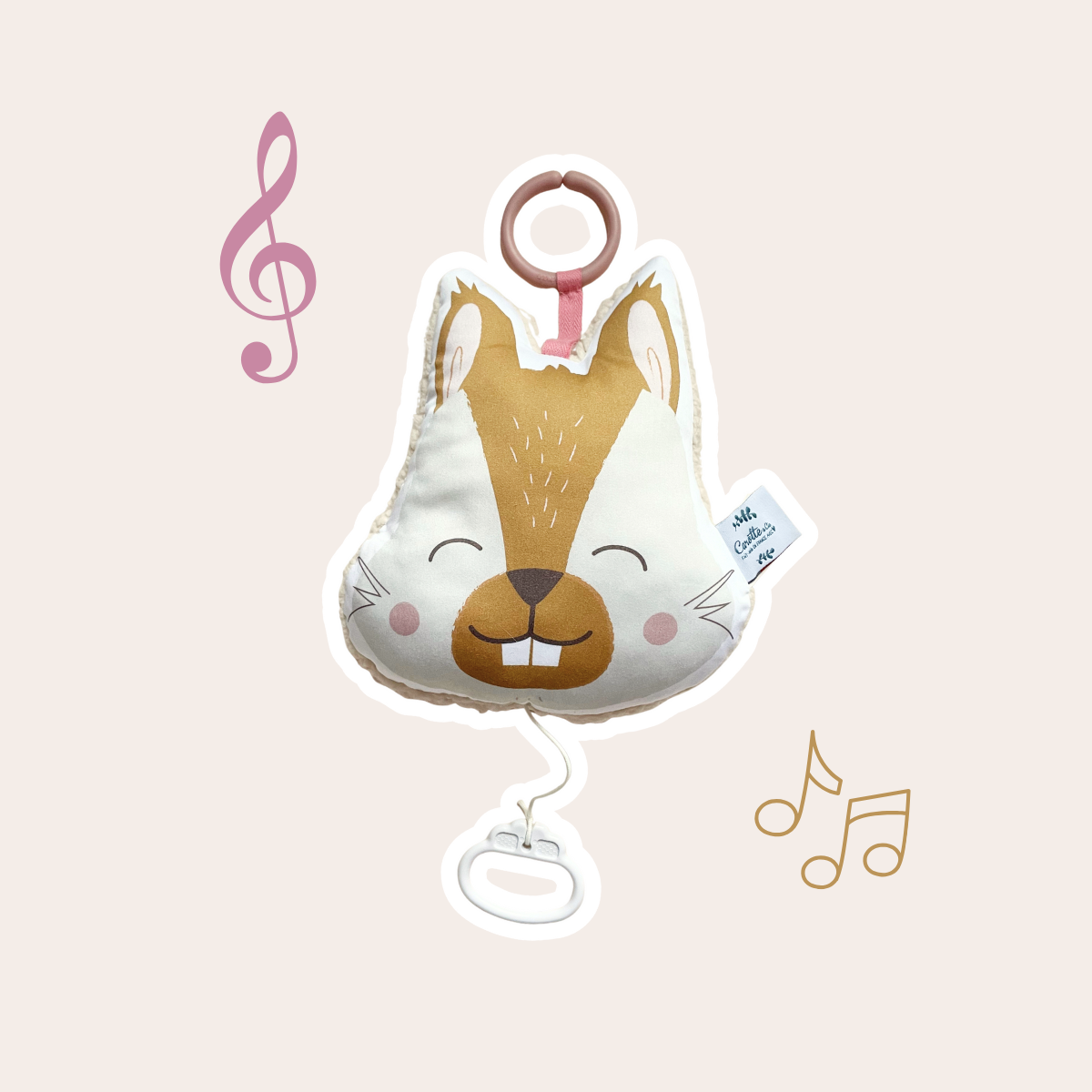 Mini coussin musical nomade Ecureuil beige et camel – L'indispensable pour des dodos apaisés !