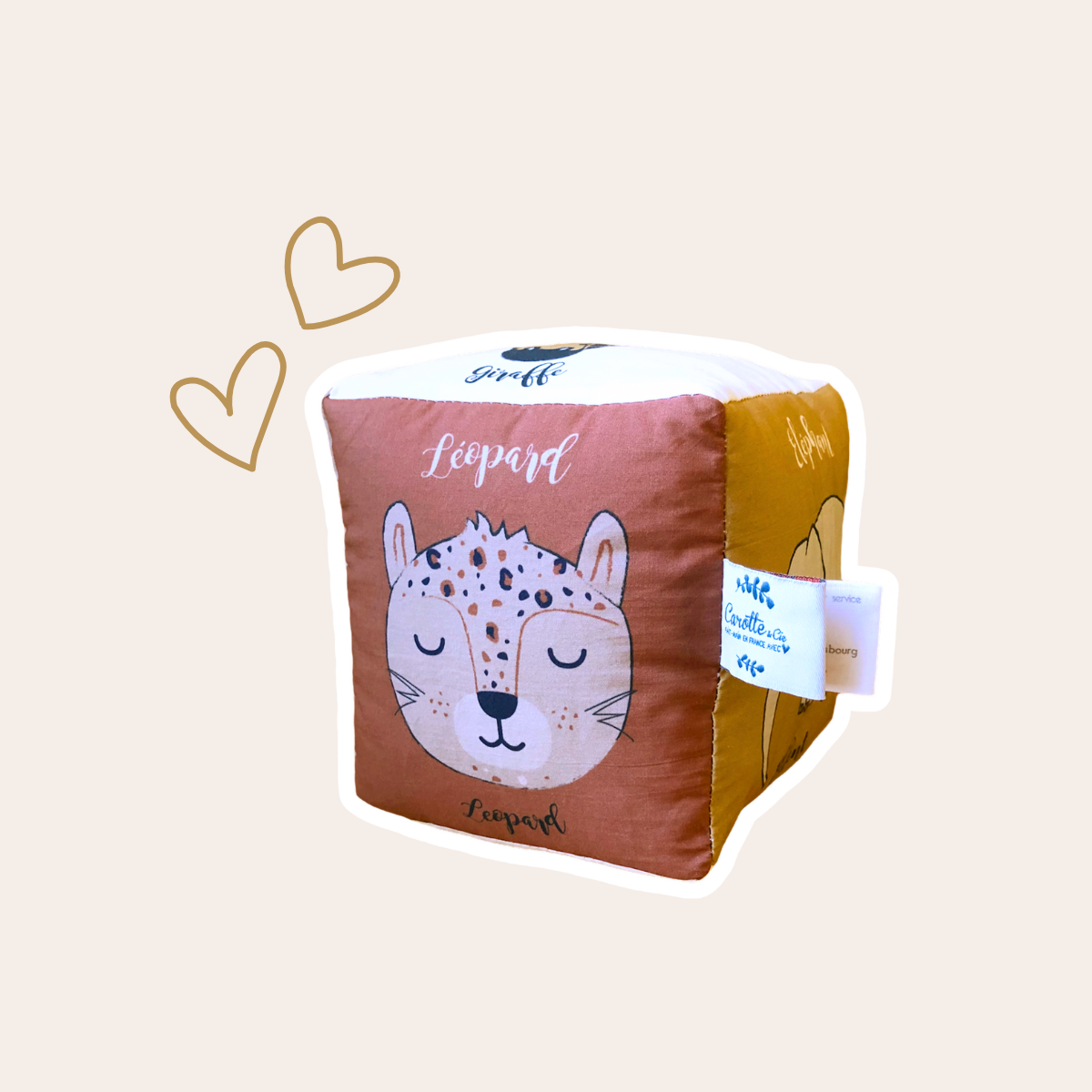 Cube d'éveil Animaux de la Savane en tissu – Jouet sensoriel pour l'éveil de bébé