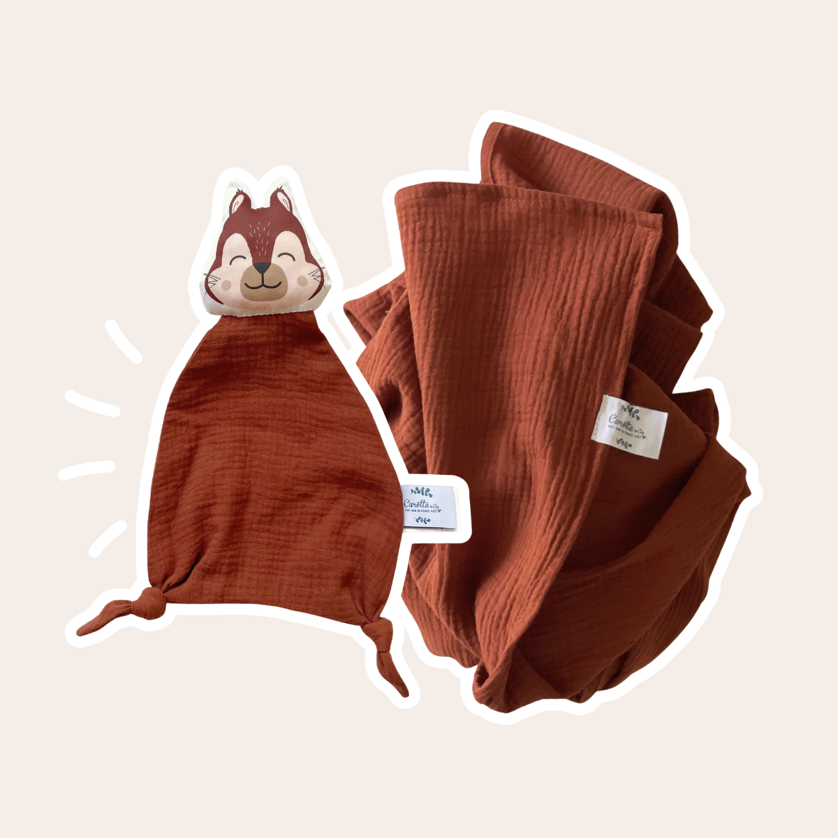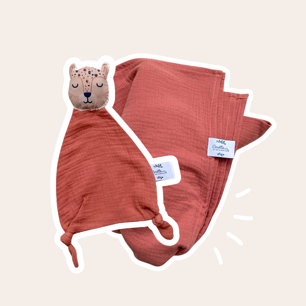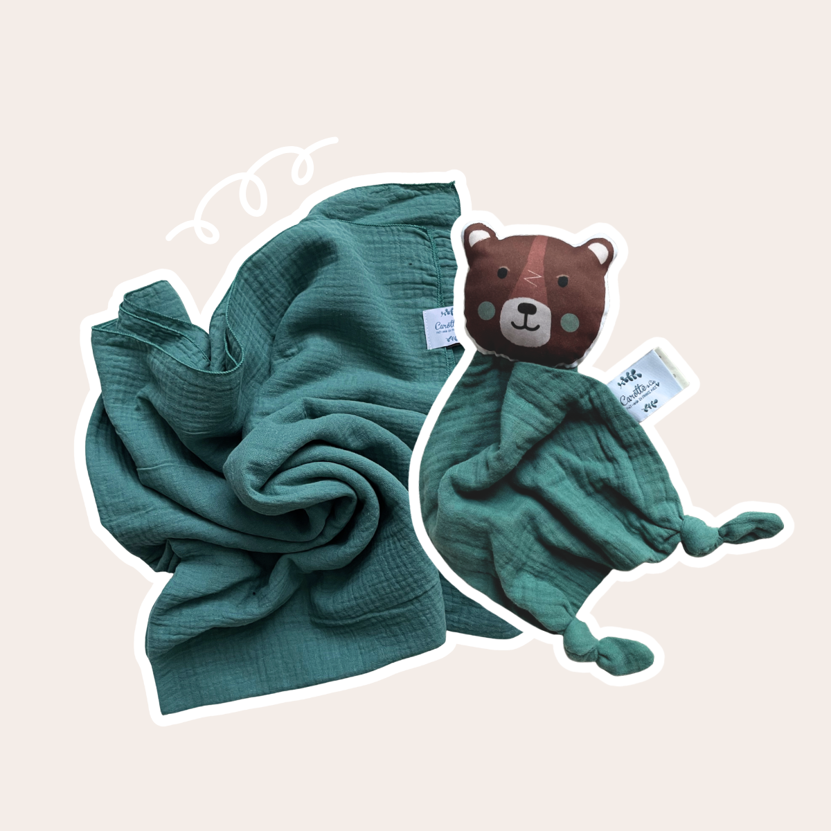 Offrez à votre tout-petit douceur et confort avec le coffret naissance "Câlin", un indispensable pour des nuits paisibles et des siestes douillettes. Ce coffret est composé d'un doudou ultra-doux en double gaze de coton et d'un maxi lange assorti, conçu à partir de tissus de haute qualité, certifiés sans substances nocives. Parfait pour respecter la peau délicate de bébé tout en lui apportant une sensation de bien-être inégalée.
