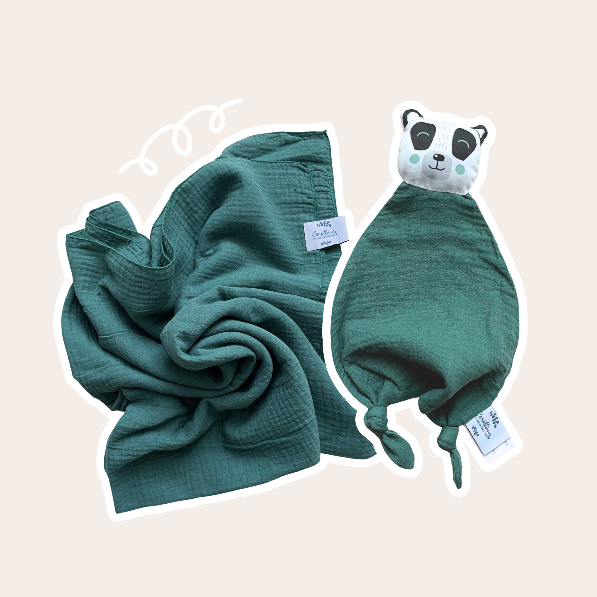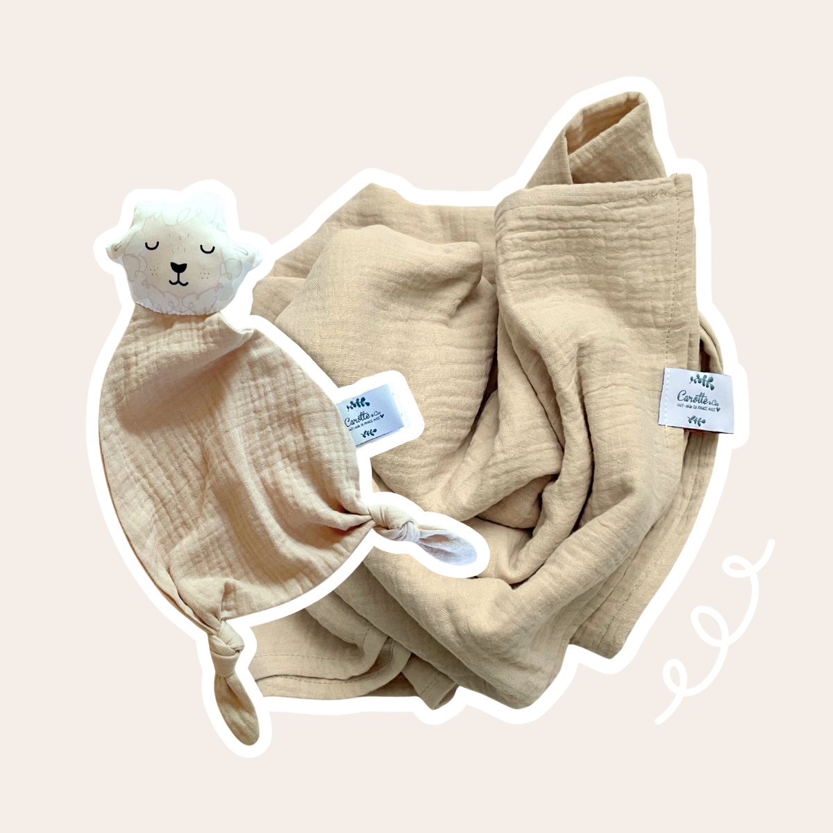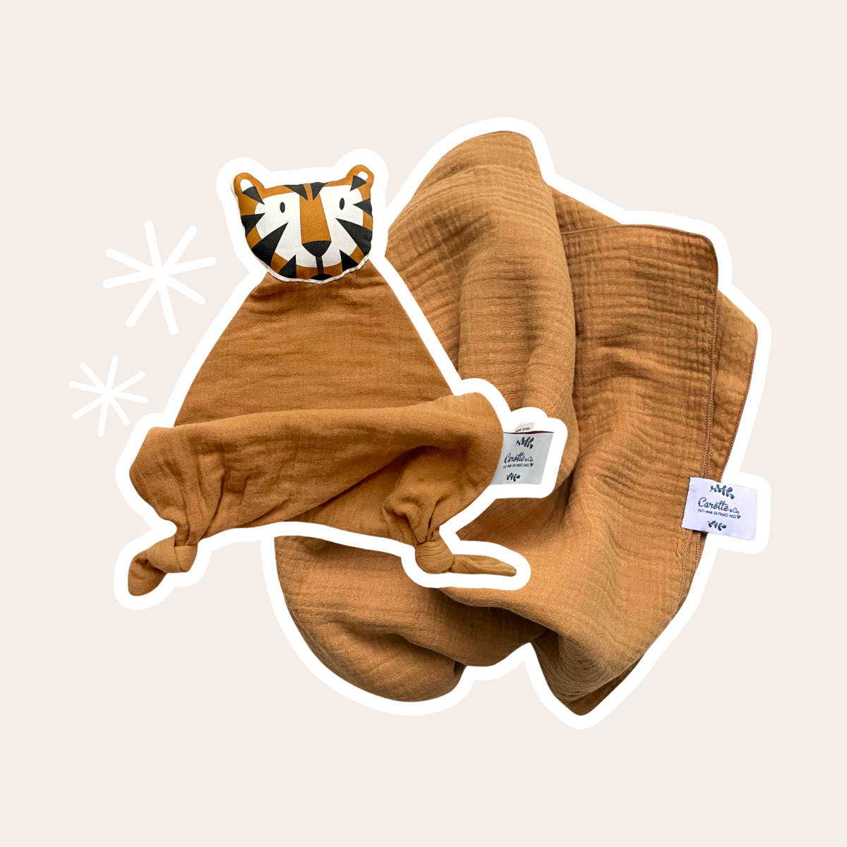 Offrez à votre tout-petit douceur et confort avec le coffret naissance "Câlin", un indispensable pour des nuits paisibles et des siestes douillettes. Ce coffret est composé d'un doudou ultra-doux en double gaze de coton et d'un maxi lange assorti, conçu à partir de tissus de haute qualité, certifiés sans substances nocives. Parfait pour respecter la peau délicate de bébé tout en lui apportant une sensation de bien-être inégalée.