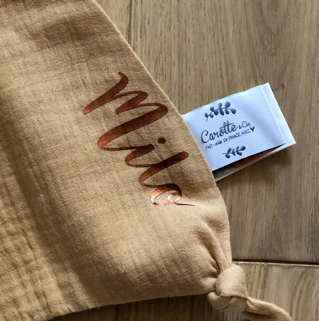 Le petit +, le doudou Ecureuil en double gaze camel est personnalisable ! Un prénom, un mot doux, laissez parler votre créativité pour rendre votre doudou totalement unique pour son petit propriétaire. (utilisation de flex PU certifié Oekotex). Commandez-le en 1 ou 2 exemplaires pour être sûr d'en avoir un toujours sous la main!