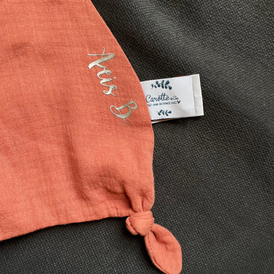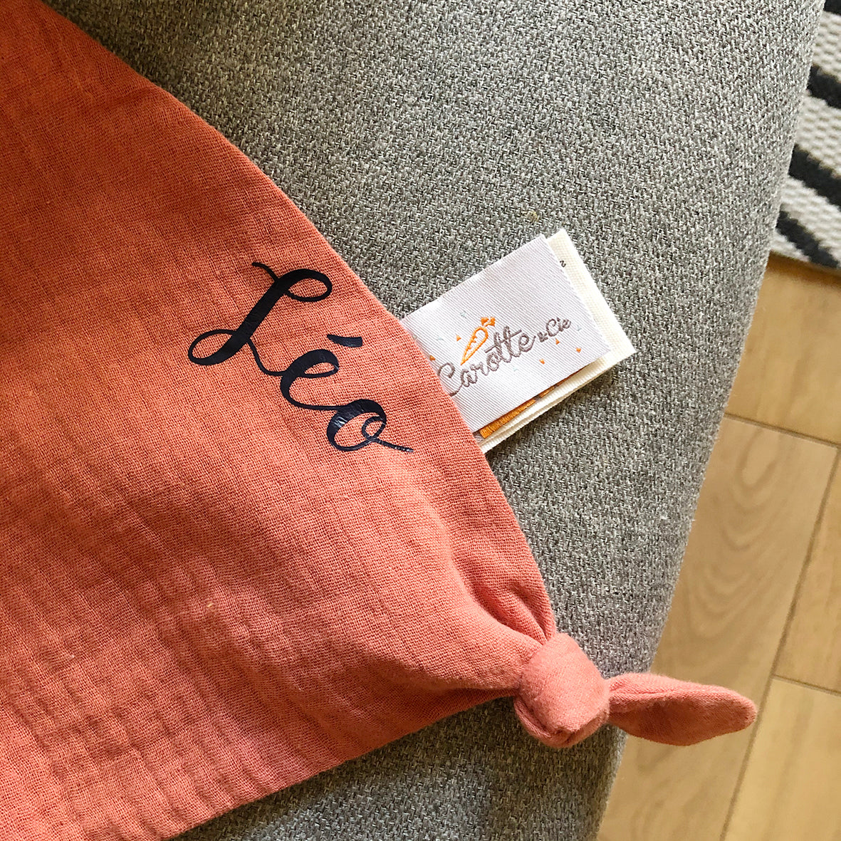 Le petit +, le maxi doudou en double gaze est personnalisable ! Un prénom, un mot doux, laissez parler votre créativité pour rendre votre doudou totalement unique pour son petit propriétaire. (utilisation de flex PU certifié Oekotex). Commandez-le en 1 ou 2 exemplaires pour être sûr d'en avoir un toujours sous la main!