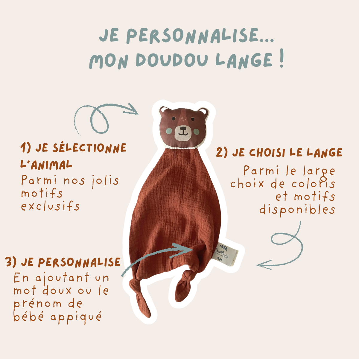Offrez à votre tout-petit un doudou lange personnalisable conçu avec amour !
