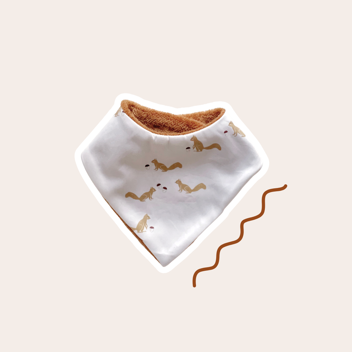 Mini bavoir dentition bandana motif Ecureuils & noisettes; l'indispensable pour les bébés qui font leurs dents !