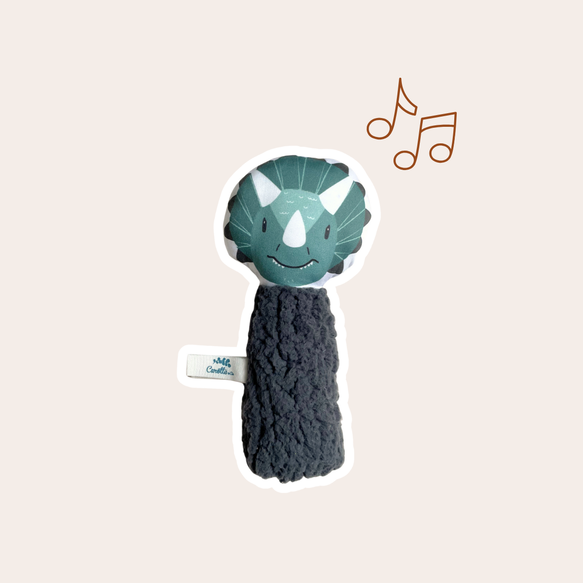Le petit +, le hochet gling-gling Dinosaure teddy gris anthracite est certifié CE sur les jouets pour une utilisation en toute sécurité. Maintenant personnalisable; un prénom ou un mot doux, ajouter votre petite touche personnalisé grâce aux flex.