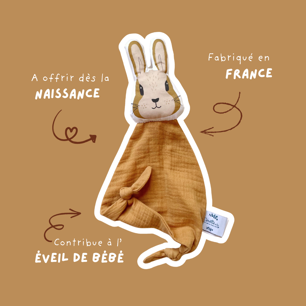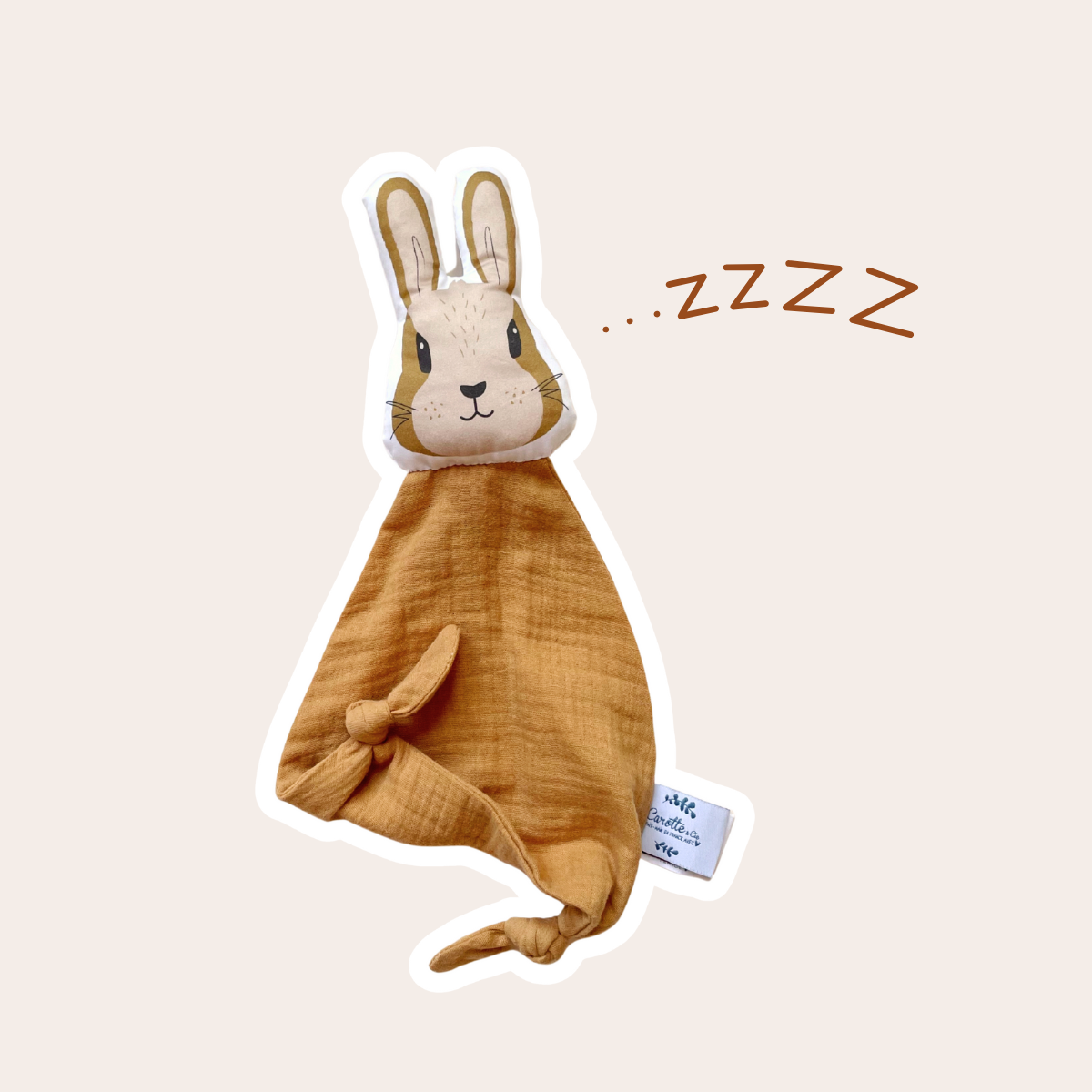 Doudou Lapin en double gaze camel – Le Compagnon Idéal pour Bébé
