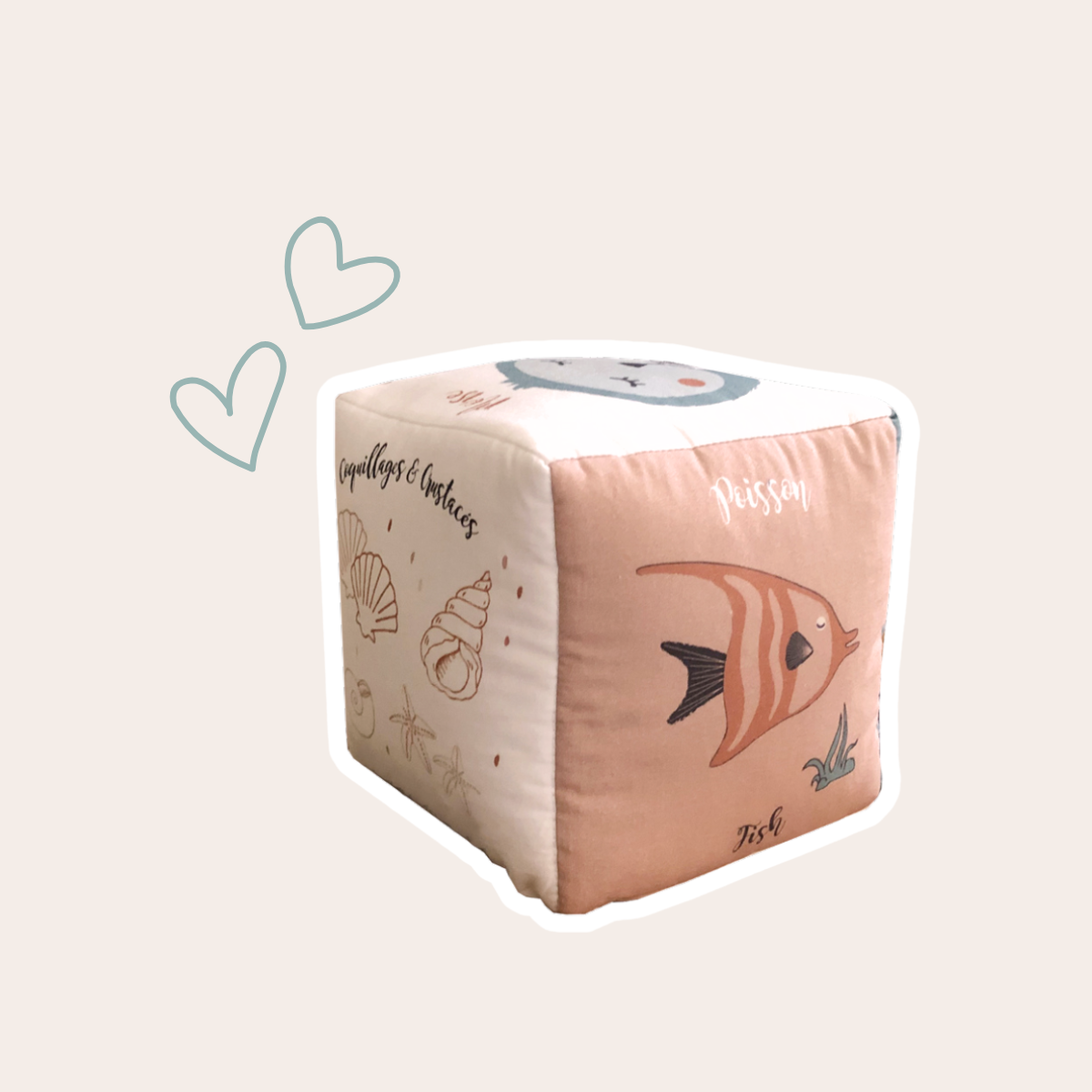 Cube d'éveil Animaux de la Mer en tissu – Jouet sensoriel pour l'éveil de bébé