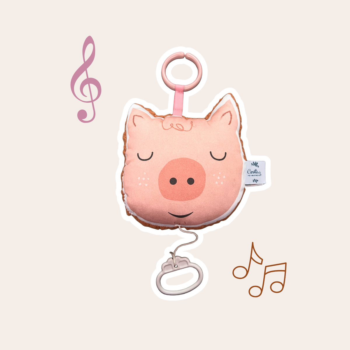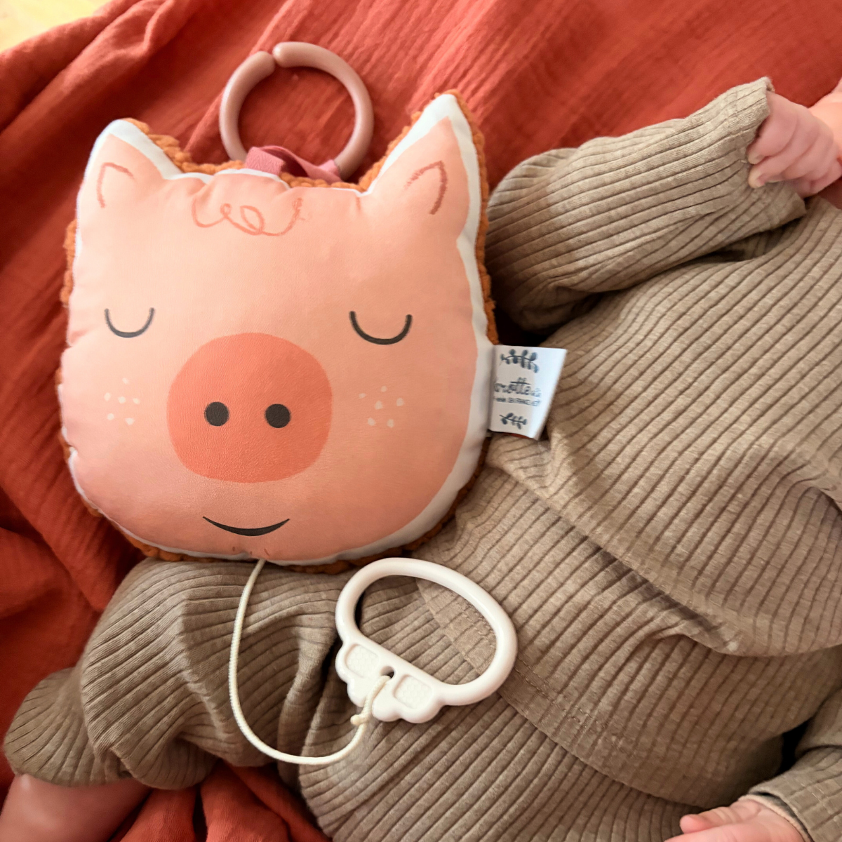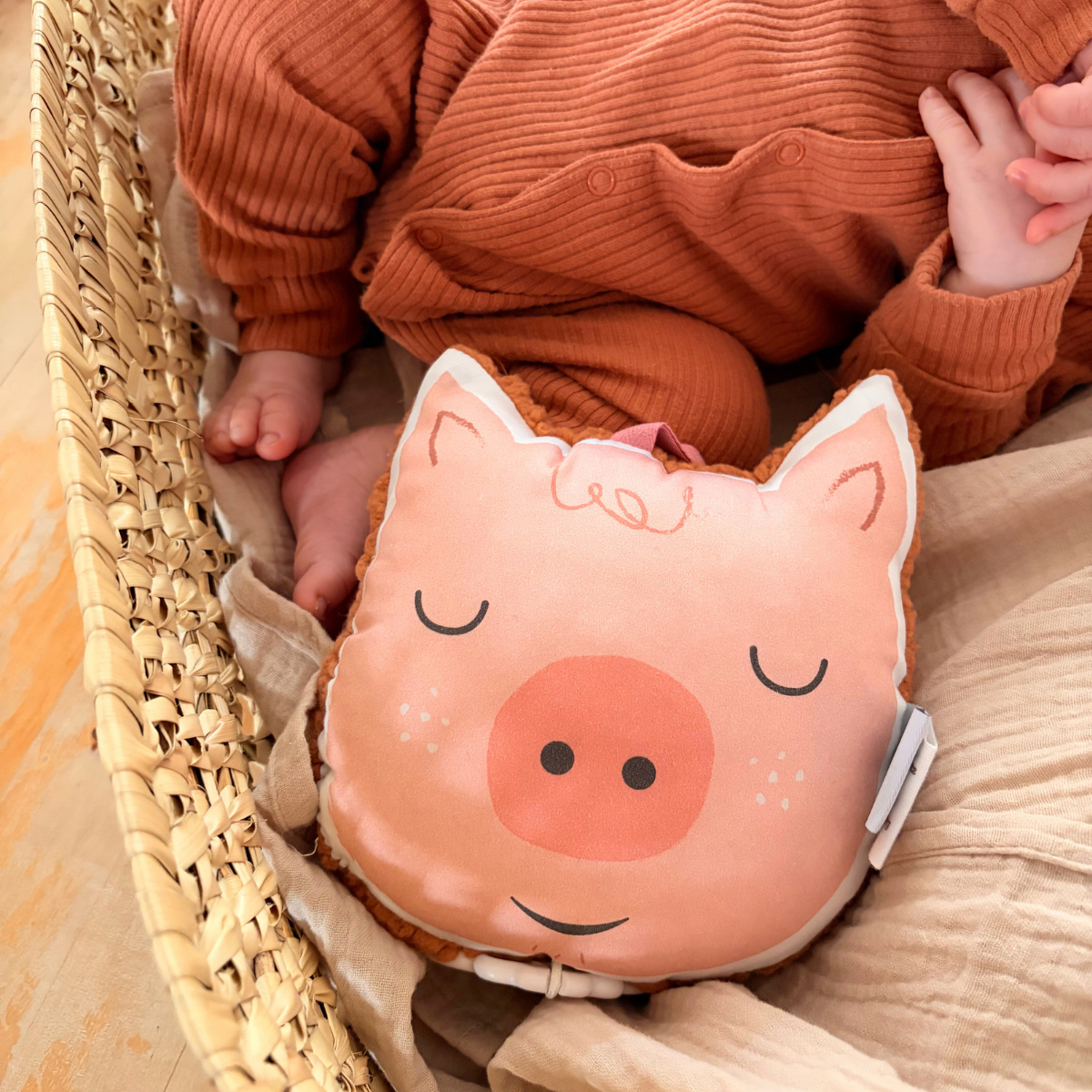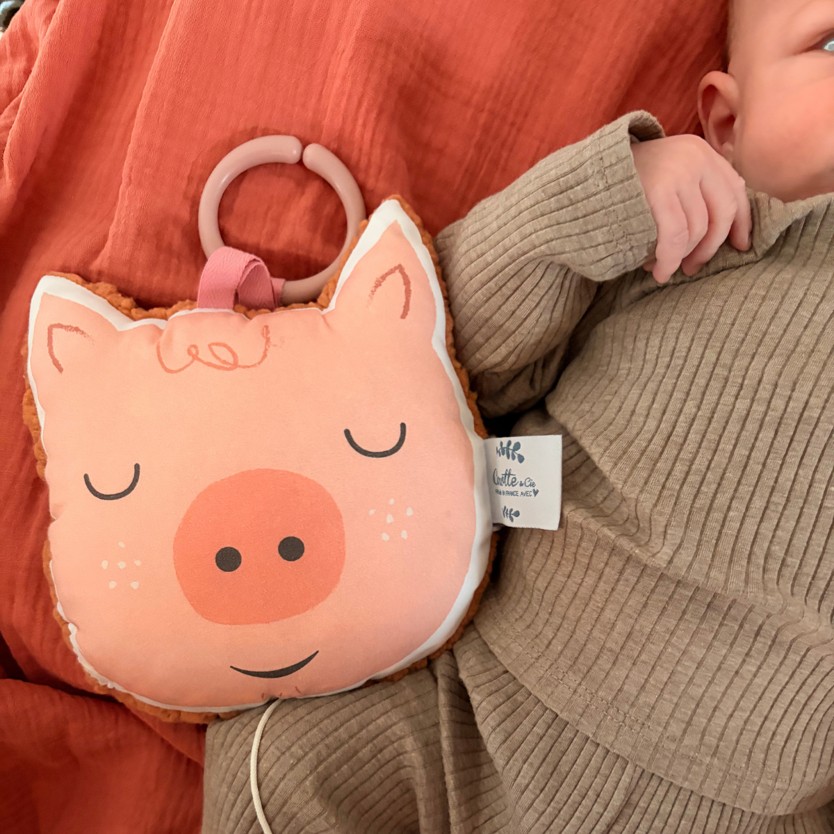 Mini coussin musical nomade Cochon rose – L'indispensable pour des dodos apaisés !