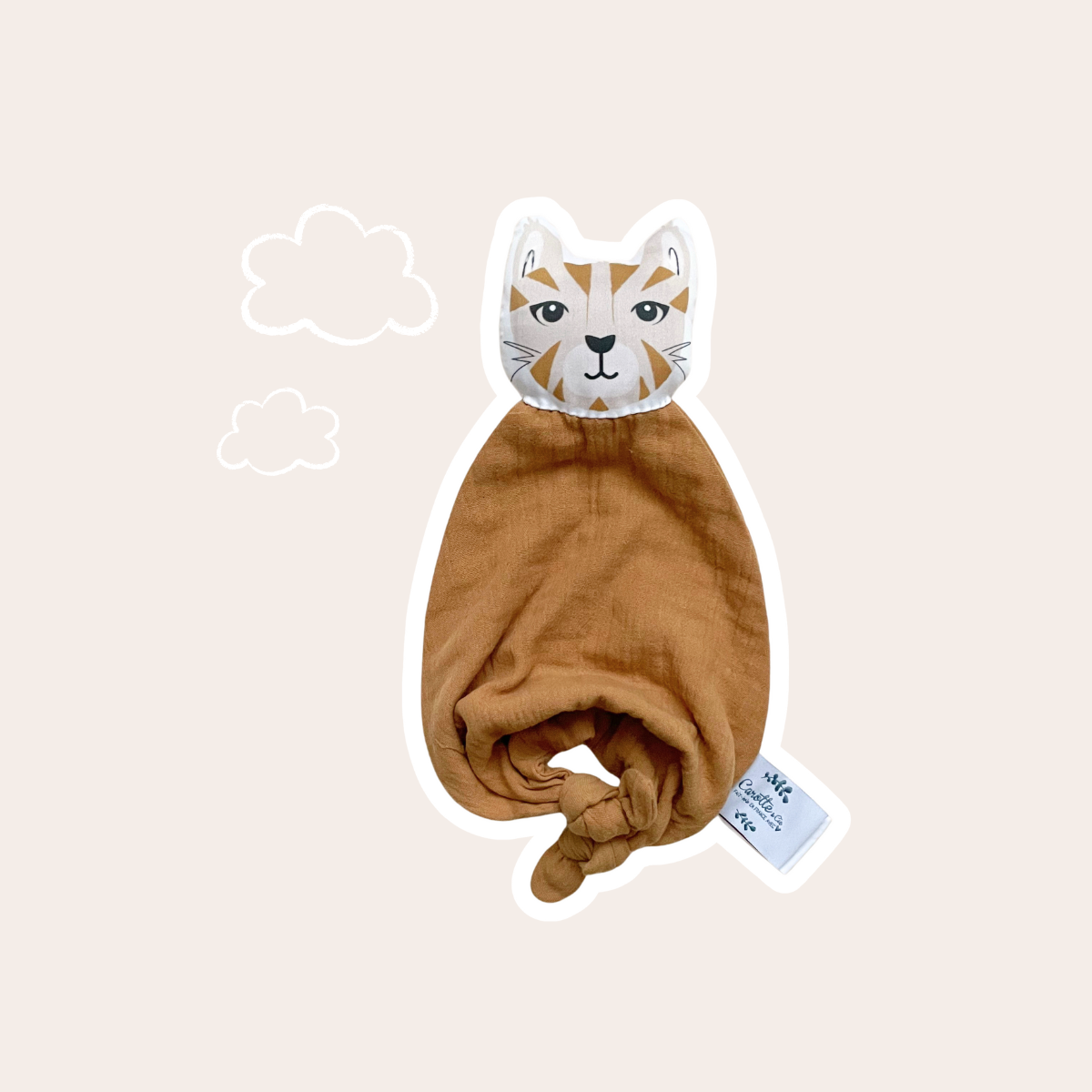 Doudou Chat en double gaze camel – Le Compagnon Idéal pour Bébé