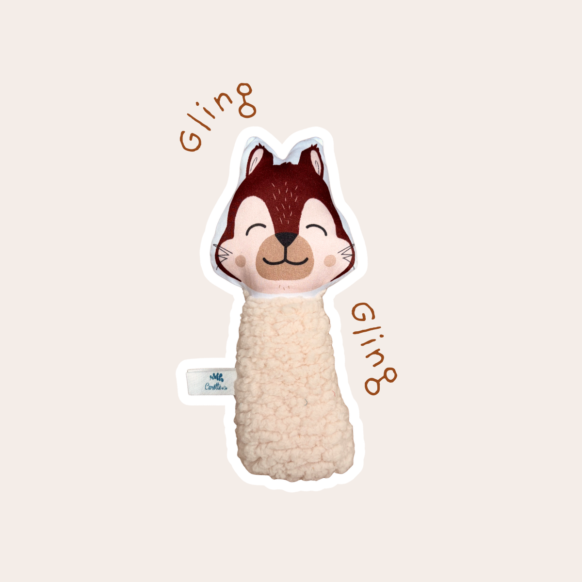 Hochet gling-gling Ecureuil toffee teddy beige