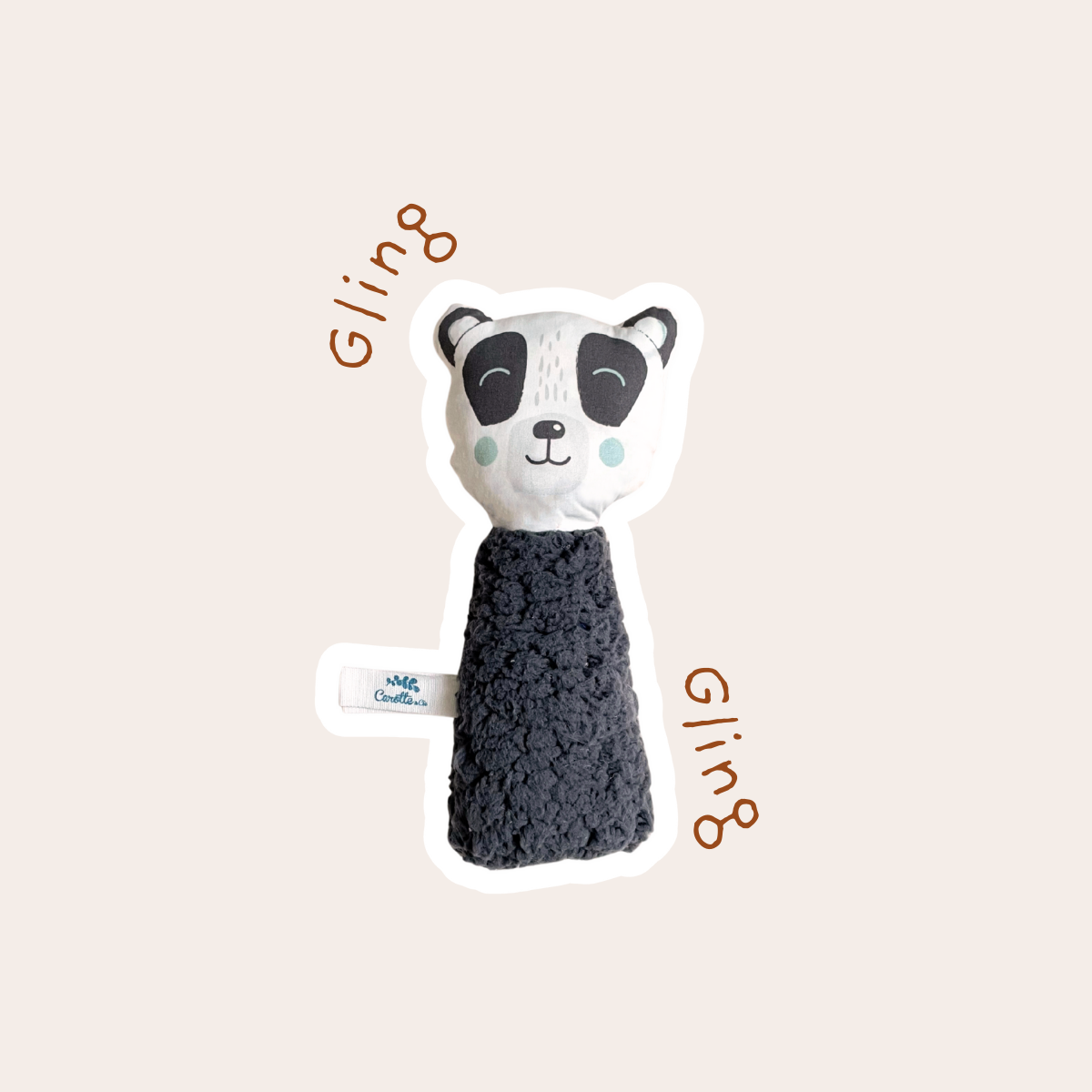 Hochet gling-gling Panda teddy gris anthracite; pour éveiller bébé tout en douceur.