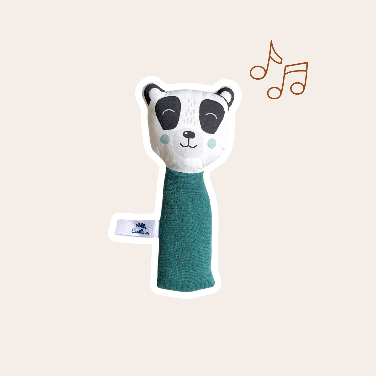 Hochet gling-gling Panda vert eucalyptus; pour éveiller bébé tout en douceur.