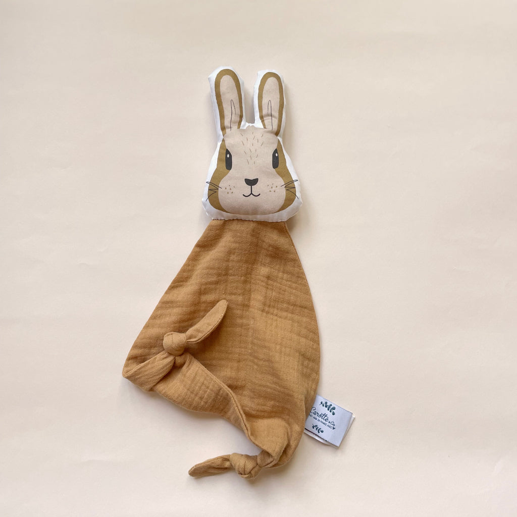 Doudou Lapin en double gaze camel – Le Compagnon Idéal pour Bébé
